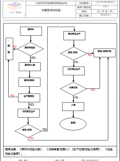 以上是我樂(lè)華包裝整個(gè)產(chǎn)品質(zhì)量管控流程,明確質(zhì)量要求及質(zhì)量職責(zé),形成質(zhì)量記錄,加強(qiáng)產(chǎn)品質(zhì)量的可控性,從而減少產(chǎn)品不良率,提高產(chǎn)品質(zhì)量?,F(xiàn)在將整個(gè)流程分享給各位讀者,歡迎借鑒,也歡迎提出改進(jìn)建議,讓我們有改進(jìn)的契機(jī),讓整個(gè)流程更加完善。