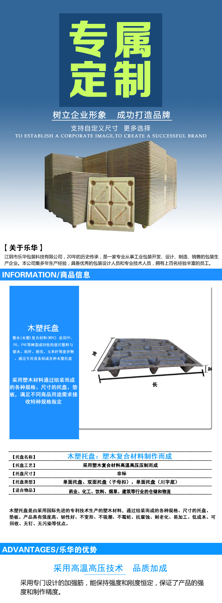 (4) 可以多個托盤疊加在一起堆置,50個托盤的高度約7英尺。靜載荷是動載荷的10 倍,用鏟車可以從四邊將托盤鏟起;
