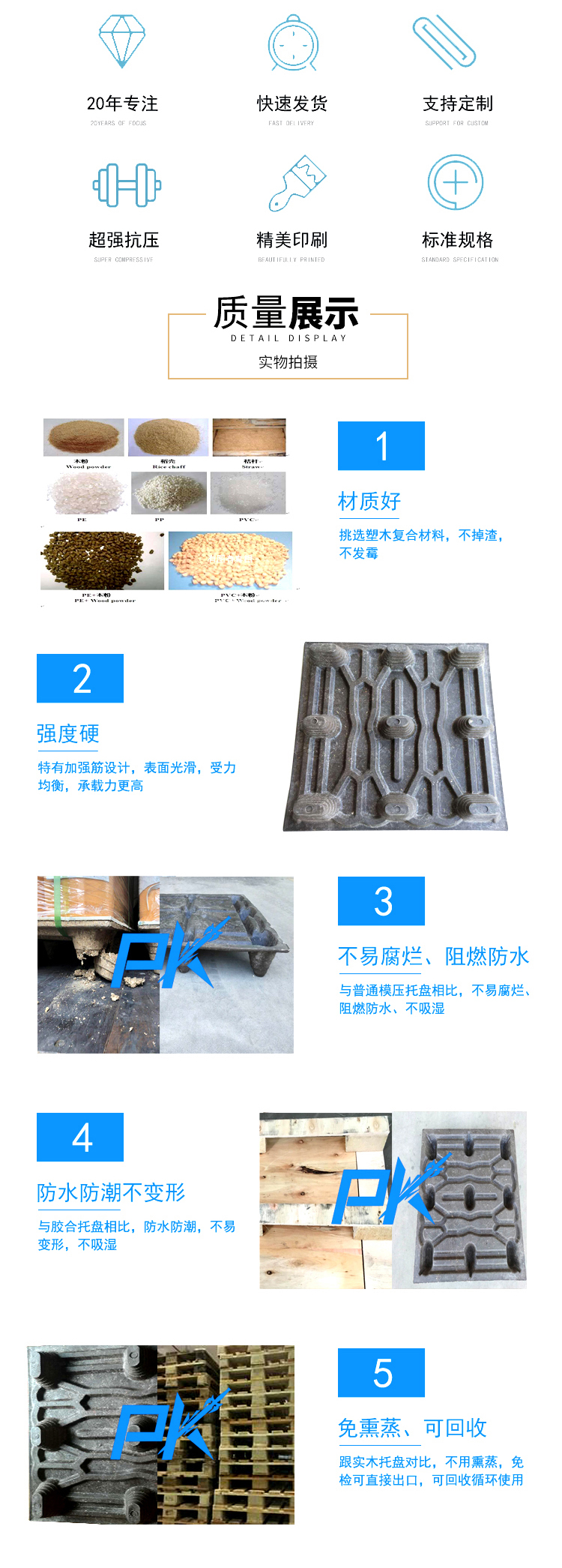 (1) 含水率較低,一般控制在6%~8%之間,托盤在使用過程中不吸濕、不變形;