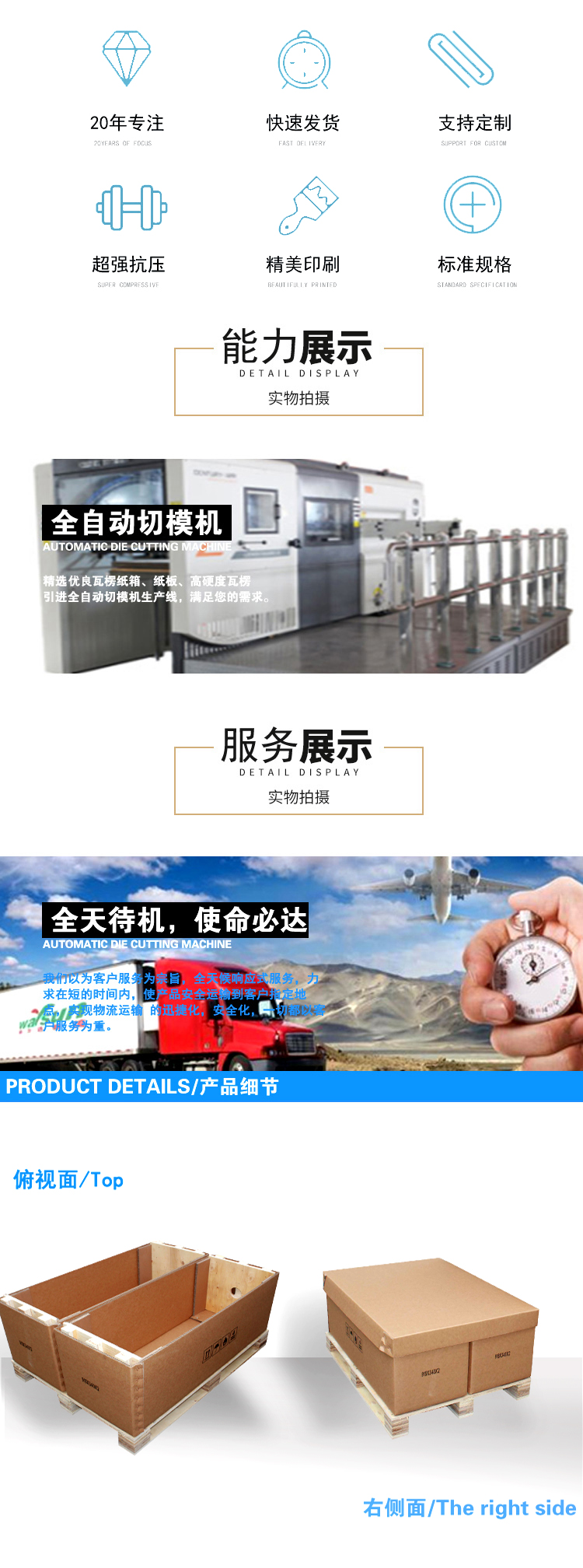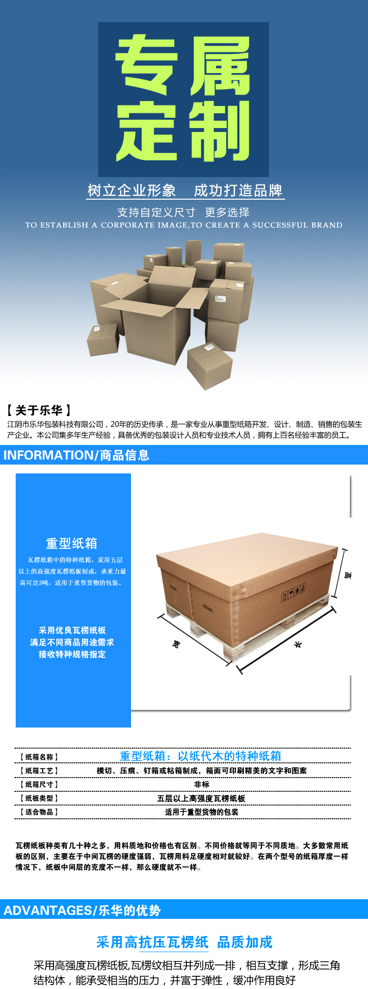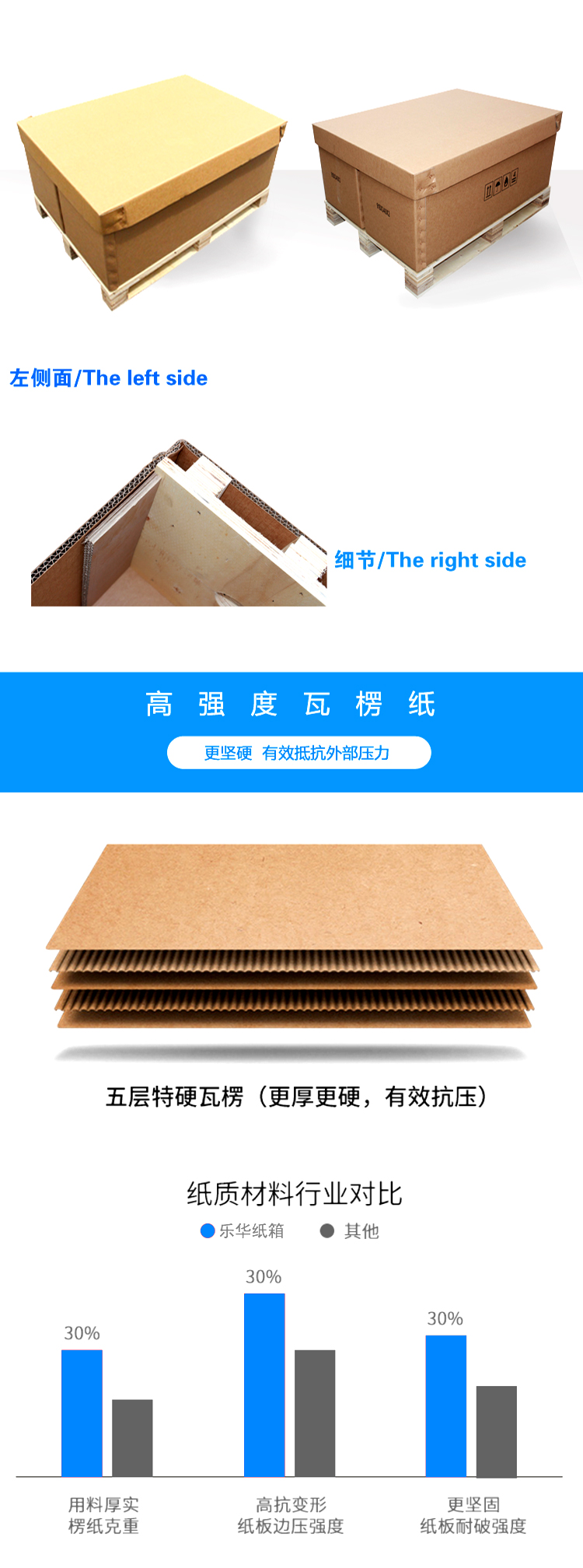 瓦楞紙箱中的特種紙箱,采用五層以上的高強(qiáng)度瓦楞紙板制成,承重力最高可達(dá)3噸,適用于重型貨物的包裝。由于其性能接近木箱,通常被用來“以紙代木”,取代部分木箱。