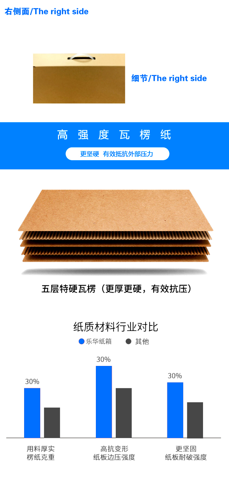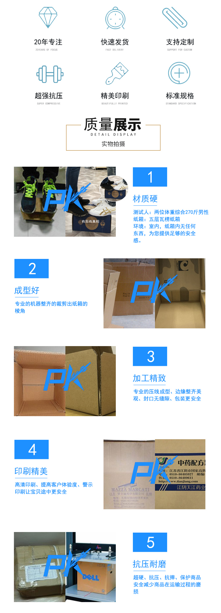3. 抗壓強(qiáng),瓦楞結(jié)構(gòu)使紙箱的緩沖抗壓能力極強(qiáng),可全方位的保護(hù)產(chǎn)品;